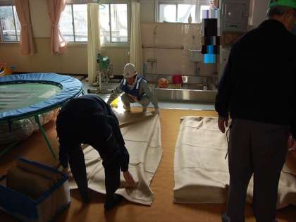 現状把握、救助活動、食料配布など、実際を想定して、いろいろやっておられました。