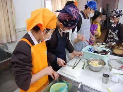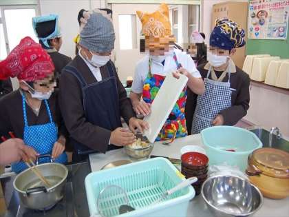 「グループで協力し、おいしいごはんとみそしるをつくろう。」というめあてで実習しました。