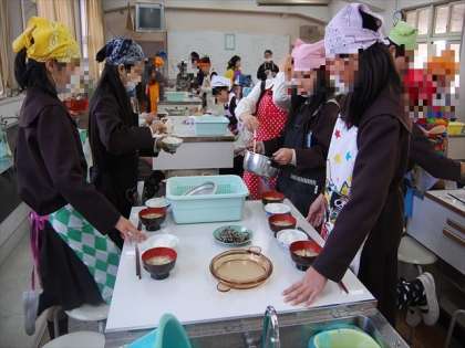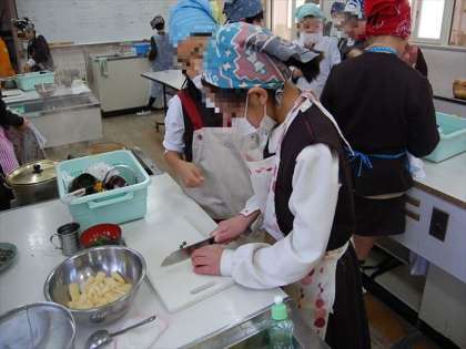 みそしるが出来てきたら、「あ、いいにおい」と試食が待ちきれない様子でした。怪我をせず、安全に器具も扱っていました。