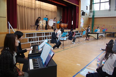 教職員は、器楽合奏「アフリカン・シンフォニー」を発表しました。練習時間の少ない中、先生たちは、頑張りました。