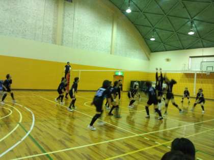 バレーボールは、一試合目、春日出中学校と対戦しました。素晴らしい健闘で、接戦となりました。結果は惜敗となりましたが、みなさん歓喜みなぎる表情でした。