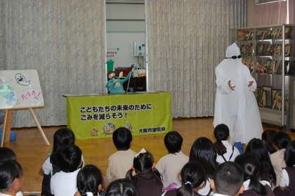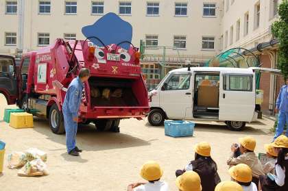 お芝居やパッカー車の実演など、子どもたちの知的好奇心を揺さぶりながらの学習時間でした。