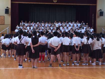 最後に全員で気持ち良く「ええとこいっぱい春日出KID’S」を歌いました。講堂中に素敵な歌声が響き渡っていました。