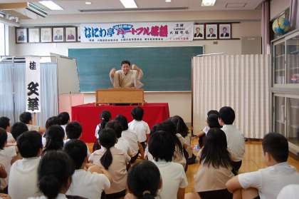 6月29日の水曜日、6年生が落語の出前授業を受けました。本物の落語家さんにお越しいただき、落語の世界について学びました。