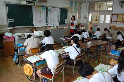 「暑中見舞い」について宛名や住所の書き方を此花郵便局の方にわかりやすく教えていただきました。子どもたちは、暑中見舞いを出す相手の顔を思い浮かべながら、一字一字丁寧に気持ちを伝える文章を真剣に考えていました。たとえば、おばあちゃんやおじいちゃんに夏休みに会いに行くことやプールで頑張っていることなど、伝えたいことを気持ちをこめて書いていました。最後に、名前に頭文字の入ったハンコをいただきとても嬉しそうにしていました。