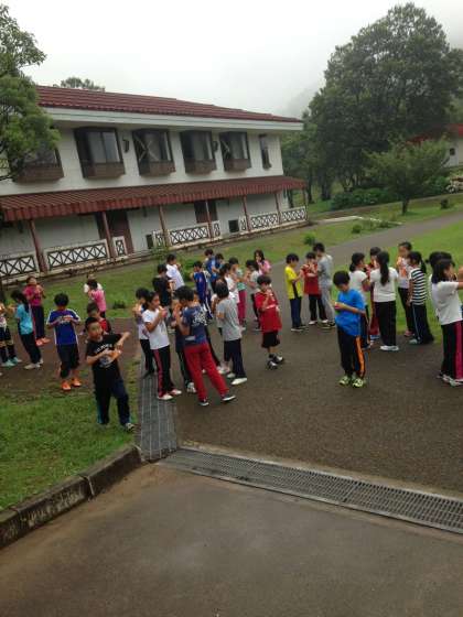 室内オリンピックで楽しい汗をかいた後は、美味しいジュースをいただきました。雨も上がり、涼しくいただきました。