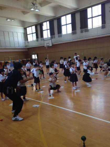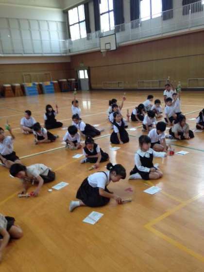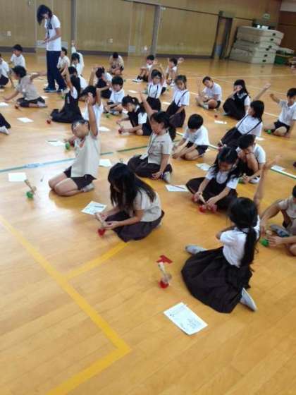 日本けん玉協会から特別講師にきていただき、今日は低学年に教えてもらいました。あっという間の45分でした。