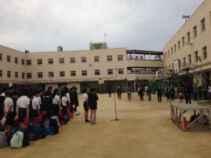 13日、朝7時に学校に集まり、修学旅行のスタートです。