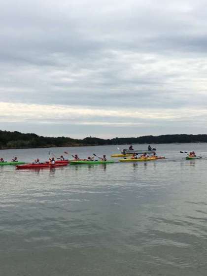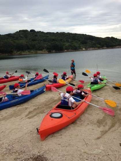 昼から二人乗りシーカヤックに挑戦しました。二人で協力しないと進みません。互いに声を掛け合い、互いに尊重し合い、コミュニケーションをとることの大切さを学びました。