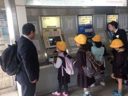社会見学の仕上げは、自分たちで帰りの切符を買いました。みんな上手に買えました。