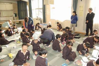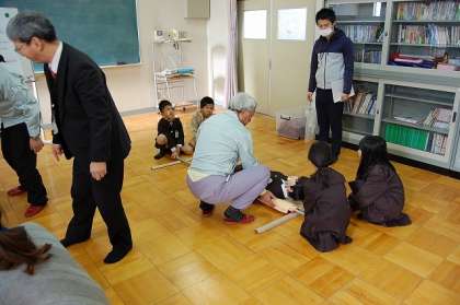 さらに、頭を守るための新聞紙による帽子作りや、毛布を使ったタンカの作り方も学びました。