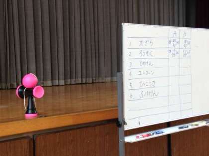 8日今年最後のけん玉特別授業が行われました。高学年が対象です。学年を二分し、対抗戦で楽しみました。