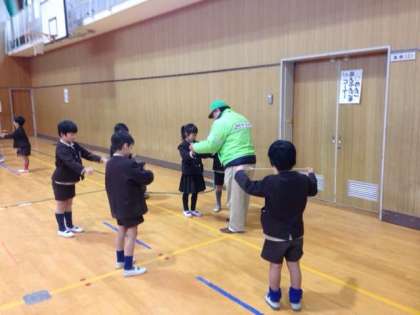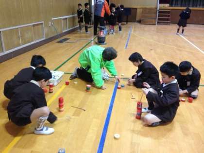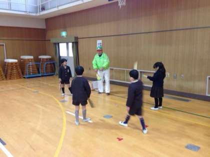 9日、見守り隊の皆さんをゲストティーチャーにお招きし、1年生が昔遊びを教えていただきました。