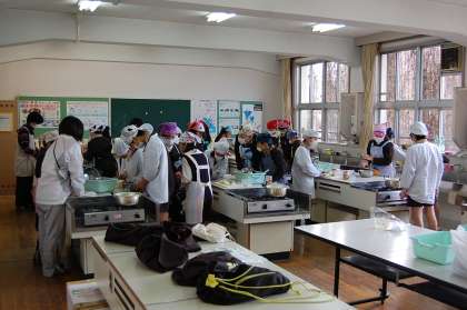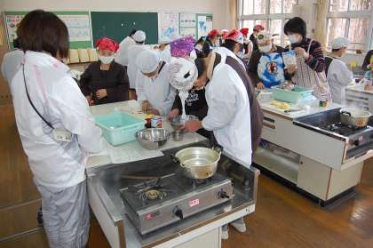 5年生が、家庭科の調理実習で白玉だんごを作りました。