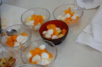 だんごを丸めたり、果物を切ったり、みんなで協力しながら調理しました。