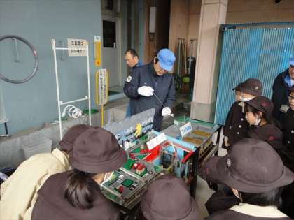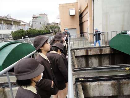 春日出小学校や家庭からの排水を、きれいな水に変える仕組みについて学習しました。24時間休むことなく機械が動いていることにびっくりしました。