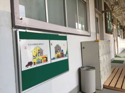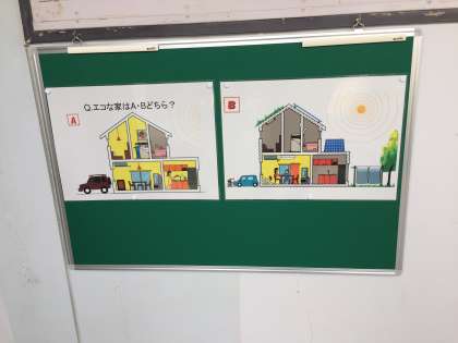 今回は土曜授業で5、6年生が学習した『エコな家はA・Bどちら?』を掲示しました。