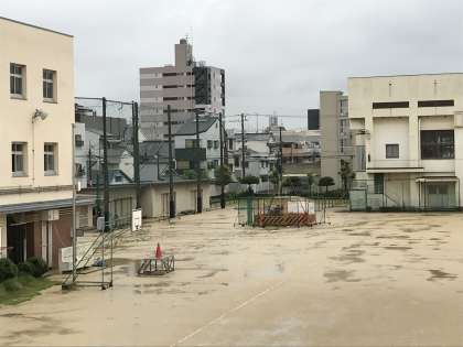 台風3号の直撃は免れましたが、昨日も雨。今朝も雨。運動場はご覧のような状態です。