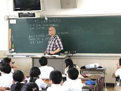 バランスのよい食生活をしましょう!ちなみに今日の給食は夏野菜カレーでしたね。ちゃんと友だちになれたかなあ。