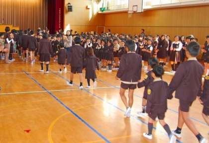 1年生にとっては、2年生から6年生までのおねえさん・おにいさんとの初めての対面となります。少々緊張しながらの入場でした。