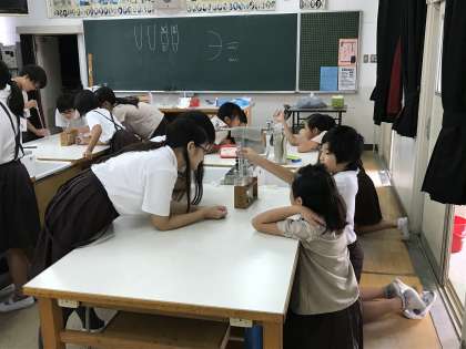 子どもたちは食い入るように観察をしています。わずかな変化を見逃さない集中力と観察力が大事ですね。その実験結果からどんなまとめや感想、考えたことを導いてくれるでしょうか。