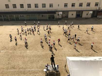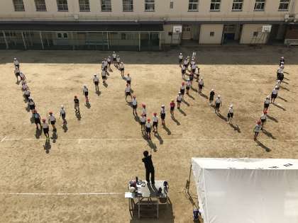 昨日とはうってかわったような秋空の下、今日も運動会練習が続きます。4年生のダンスは順調に進んでいます。