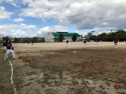 試合開始前のアップです『区P男子ソフトボール』