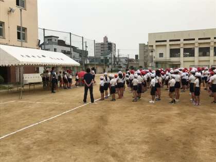 今朝の児童集会は、運動会での全体競技『大玉運び』を行いました。競技の仕方やルールの確認です。今日は赤組が勝利!さあ、本番はどんな結果となるでしょうか?