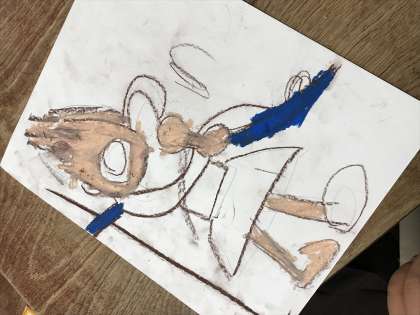 活き活きとした表情が素敵です。しっかり塗り込めています。パスを持つ手も真剣です。描き終えた後、