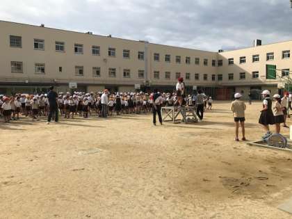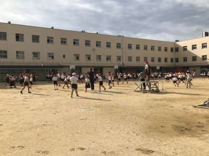心地良い秋空のもと、久しぶりの児童集会です!鬼をしたい子もいます。ひたすら逃げる子もいます。