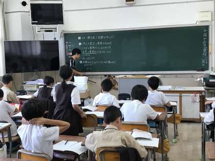 階段をのぼっていくと、元気の良い発表が聞こえてきます。いつも気持ち良い四年生です。