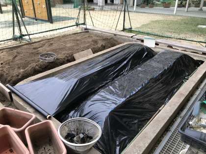 この黒のビニルシートはいったい何のためにしているのでしょうか?調べてみるとおもしろいですよ。植物を育てる秘密がかくされています!