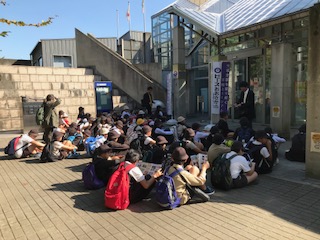 大阪城を見ながら歩いてピース大阪に来ました。大阪空襲を語り継ぎ、平和について考えます。『十六地蔵物語』の映画も観ます。戦争のない平和な時代をこれからも続けたいです。