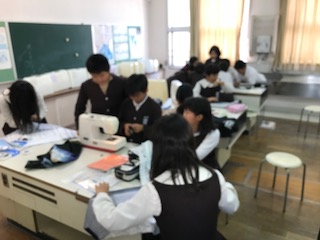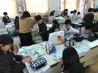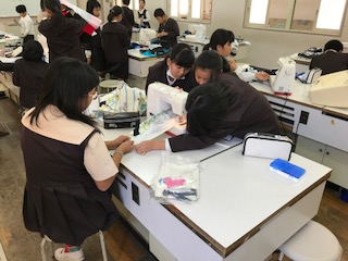 ミシンを使っての実習です。なかなか難しい活動です。友だちと協力して仕上げます!