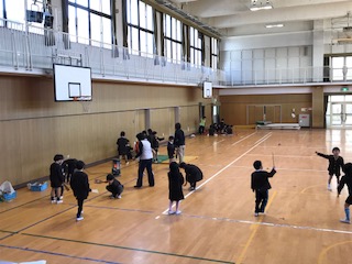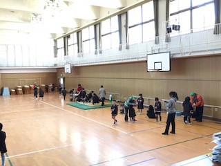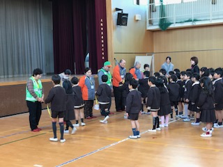 今日は地域の方に来ていただいて、昔あそびを楽しみました。講堂に子どもたちの元気な声や笑顔がいっぱい広がりました。