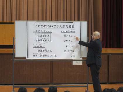 全校朝会で、校長先生からお話がありました。