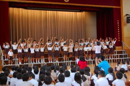 1年生から順番に聴き手に伝わるように歌っていきました。歌が終われば聴いていたほかの学年の児童が素晴らしい感想を積極的に発表していました。