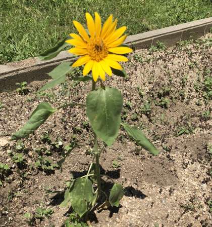 3年生がタネから育てていたヒマワリが、今日水やりに行くとかわいい花を咲かせていました。終業式に間に合わず子どもたちと一緒に喜べなくて残念ですが、外からも見えると思うのでまたのぞいてみてください。
