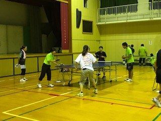 雨も上がりました。ソフトボール、バレーボール、卓球の試合が開催されています。まずは卓球!がんばれ、春日出小!