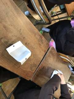 3年生はいざとという時のために紙で簡易スリッパや紙食器づくりに励んでいます。