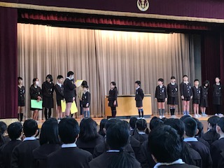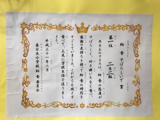 今日の児童朝会では給食委員会からの表彰がありました。どのクラスも頑張っていましたが、特に今回は2−1が時間も守り、好き嫌いなく食べることができたとのことです!