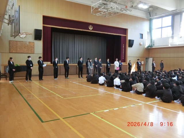 新しく赴任された教職員を紹介したあと、校長先生から挨拶がありました。