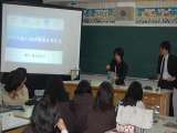 外国語活動の5年生の学習風景です。講師の先生に、質問したりされたりと、活発に活動...