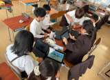 チームで、台本やスライドを作成しています。 友だちとよく話し合い、集中して進めて...
