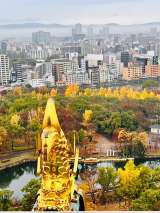 雨の大阪も風情があっていいですねー。(^.^) イチョウが綺麗に色咲いています。