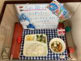 今日の献立は、牛肉と大豆のカレーライス、キャベツのひじきドレッシング、ヨーグルト...