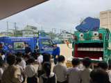 社会科の学習で、大阪市環境局から2台のパッカー車がやって来ました。職員の方にもた...