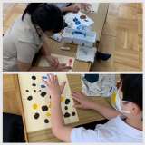 今日は、手を使って、絵を描きました。 冷たい感覚、変な感覚〜と、言いながら、楽し...