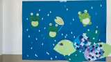 図書館の壁には、可愛らしいカエルさんの掲示物が飾られています。梅雨らしい! でも...