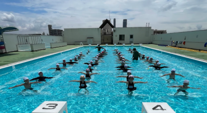 晴天の中、小学校生活初めてのプール水泳授業に取り組みました。
